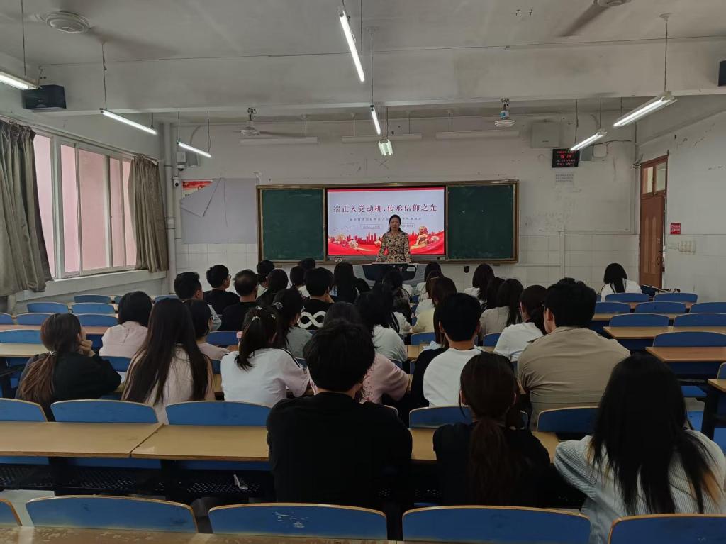 为进一步坚定入党积极分子的理想信念,提高入党积极分子思想觉悟,增强入党积极分子学习能力,发挥入党积极分子先锋模范作用。DB旗舰(食品工程系)于5月9日举行第五十六期入党积极分子培训会,食品工程系党总支负责人王新娜以“端正入党动机,传承信仰之光”为题为全体入党积极分子讲授专题党课。