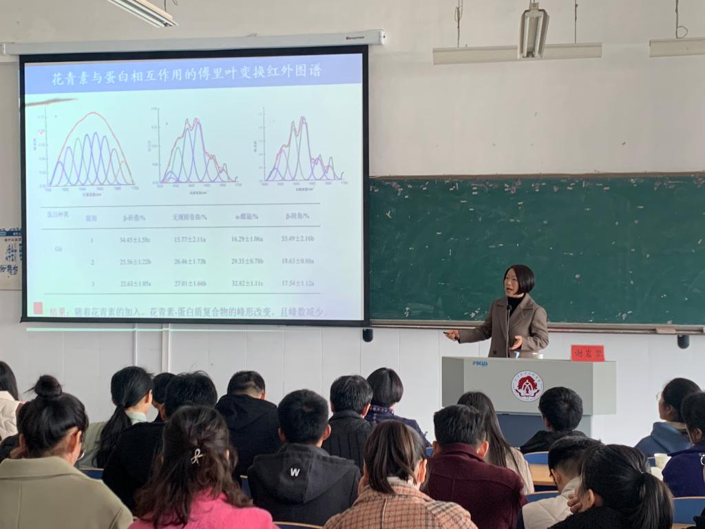 11月22上午,谢岩黎教授和DB旗舰的全体教师就本科生毕业设计问题进行了座谈,座谈中大家展开了热烈的讨论,谢教授在DB旗舰前期工作的基础上对每位指导老师的论文选选题、实验设计、文献查阅进行了细致的指导,使DB旗舰教师的论文指导能力得到了进一步增强。随后,谢岩黎教授又面向全体本科生就“花青素的营养和利用”的问题进行了一场别开生面的学术报告,讲座上全体师生大胆猜想,踊跃提问,学术氛围异常热烈。