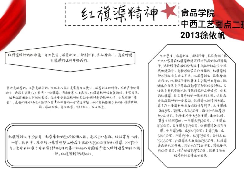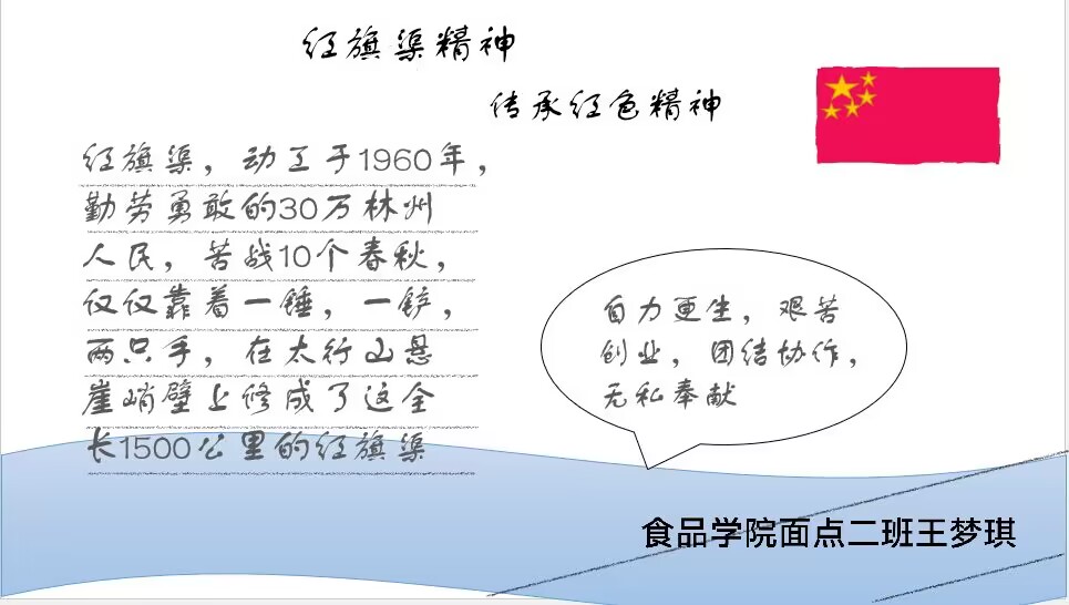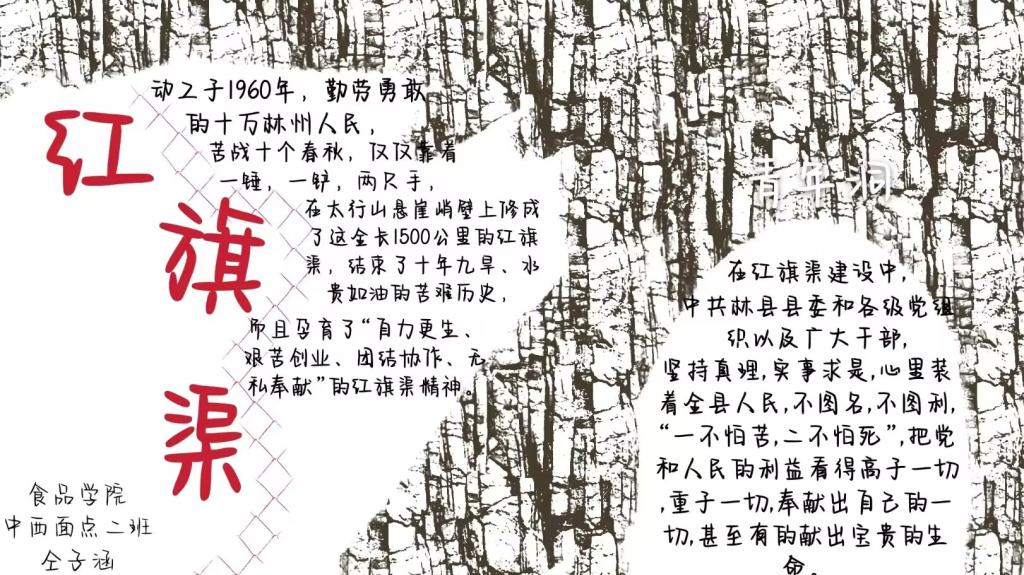 继承光荣传统,续写时代华章。食品学子采用手抄报等多种形式,弘扬红旗渠精神,传承红色血脉。