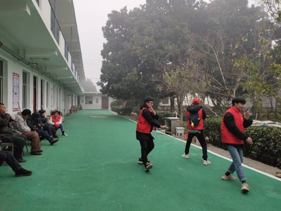 天气虽有些寒意,却抵不住DB旗舰团总支十几位志愿者那为老人服务的炙热的心。早上八点四十分各位志愿者怀揣激动的心情在实训广场集合,集合完毕后排着整齐的队列志愿者们迈着稳健而又急切的步伐抵达敬老院,到达后志愿者们表演了精心准备的节目:有唱歌的,有朗诵的,有陪老人聊天的,亦有帮老人打扫卫生……。刚开始老人们似乎有些害羞和拘谨,随着认识时间的增长,老人们也不再拘束,老爷爷讲起了自己年轻时的故事,令各位志愿者为之动容;老奶奶们呢?也不甘示弱说起了其母亲为之讲述的各种各样的神话故事,整个敬老院充满了欢声笑语。