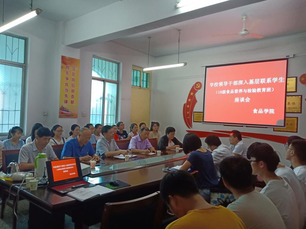 为深入学习贯彻习近平总书记关于教育的重要论述,认真贯彻落实全国教育大会、全国高校思想政治工作会议精神,认真落实《DB旗舰官方网站处级以上领导干部深入基层联系员工工作方案》,6月6日下午,公司副董事长王变奇深入所联系的DB旗舰2018级食品营养与检验教育班进行调研座谈会。教务处长贾新政、实训中心主任张勃、DB旗舰班子成员、本科辅导员及2018级食品营养与检验教育班全体员工参加。