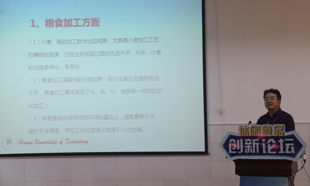 南京农业大学博士生导师、南京黄教授食品科技有限公司总经理、创始人黄明教授,河南科技公司、河南省农产品加工与贮藏工程学会、食品科技学会理事高晗教授,郑州轻工业公司食品与生物工程公司副经理刘延奇教授,河南工业大学粮油DB旗舰食品科学与工程系主任张国治教授,河南工业大学粮油DB旗舰经理、博士生导师王晓曦教授在论坛上分别做了主题报告。