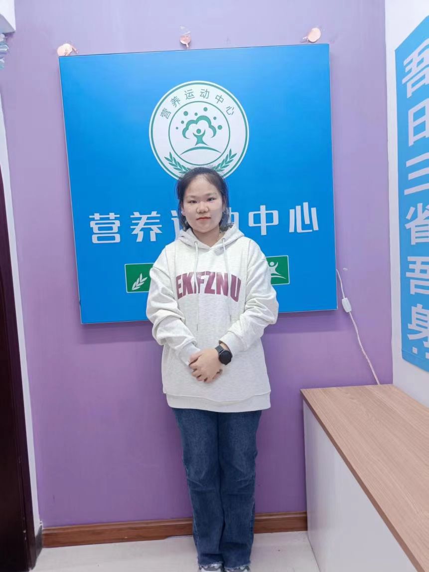 胡珊珊在进入大学以来,一直以严谨的态度和积极的热情投身于学习和工作中。在理论学习的两年中,她的真实写照是刻苦钻研、勤奋好学、扎扎实实。在实习实践的这门课程中,她谨遵校训“知行合一,德技并修”,带着满腔的自信,带着青春朝气,带着营养与健康的专业所给予的神圣使命来到“天津营动”开始了实习生涯。