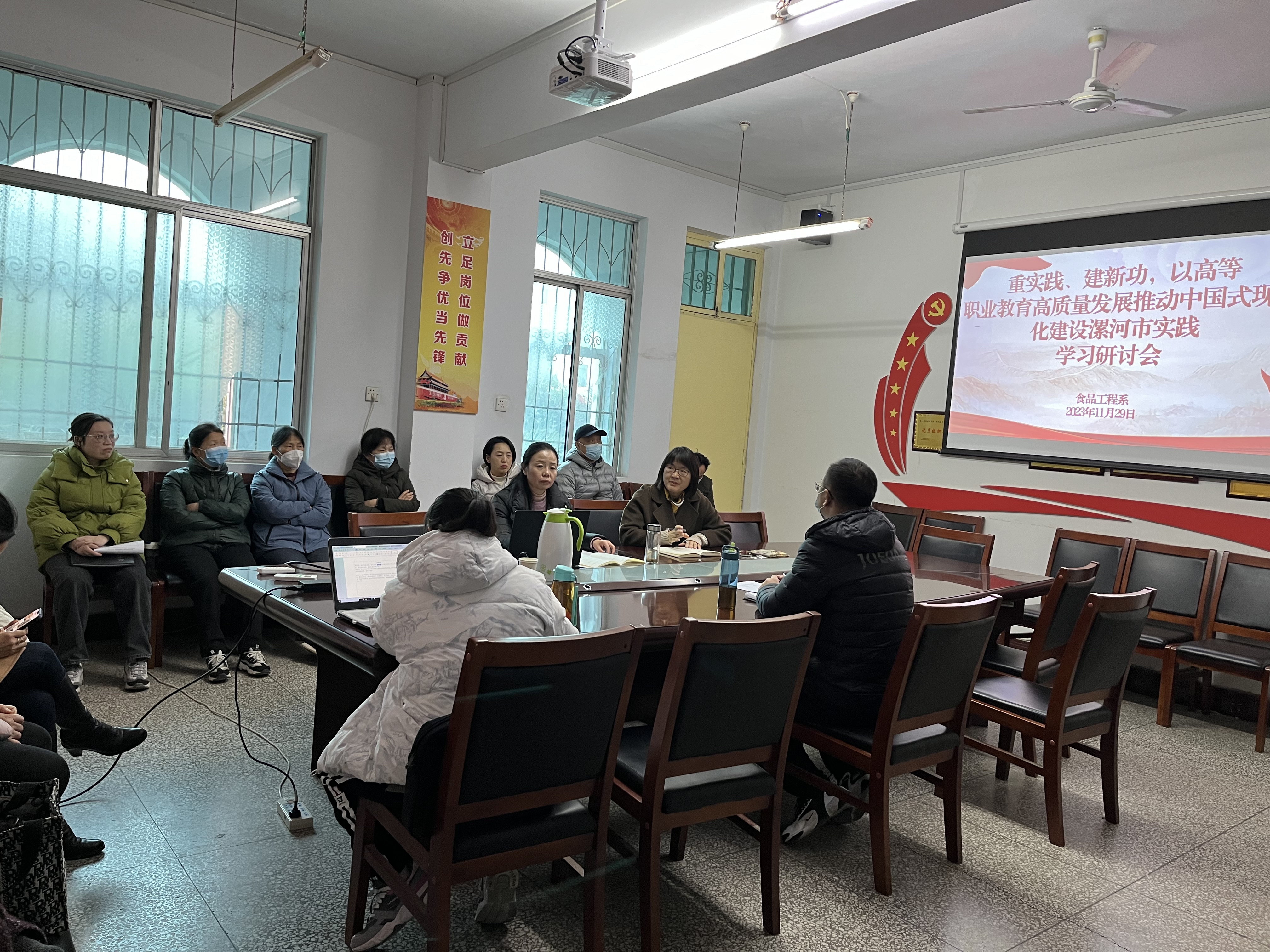 为更高质量推动系部建设,充分发挥食品专业在漯河市“三城”建设中的智力优势和人才优势,更好的服务漯河食品产业经济发展,食品工程系于11月29日召开了“重实践、建新功,以高等职业教育高质量发展推动中国式现代化建设漯河实践”学习研讨会。会议由食品工程系党总支负责人王新娜主持,行政负责人崔惠玲及全体教师参加了会议,各专业教研室主任及部分教师代表做了交流发言。
