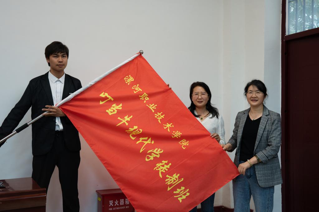 栗艳娜与崔惠玲共同为学徒制班授旗,标志着“叮当牛现代学徒制班”的正式开班。朱晓红对此次现代学徒制班的开班给予了高度评价,并对师生提出了三点要求:“一是院系要持续优化课程体系,将企业技术标准融入教学,强化“岗课赛证”融通,共建大师工作室和校企研发中心,把现代学徒制办出成效,办出特色;二是全体员工要珍惜机会,踏实认真跟企业师傅学习,争做新时代的“大国工匠”“能工巧匠”;三是发展规划处要发挥协同作用,为校企双方统筹各类资源,保障现代学徒制班的顺利开展,推动学徒制经验向全校产教融合项目的复制和推广。”