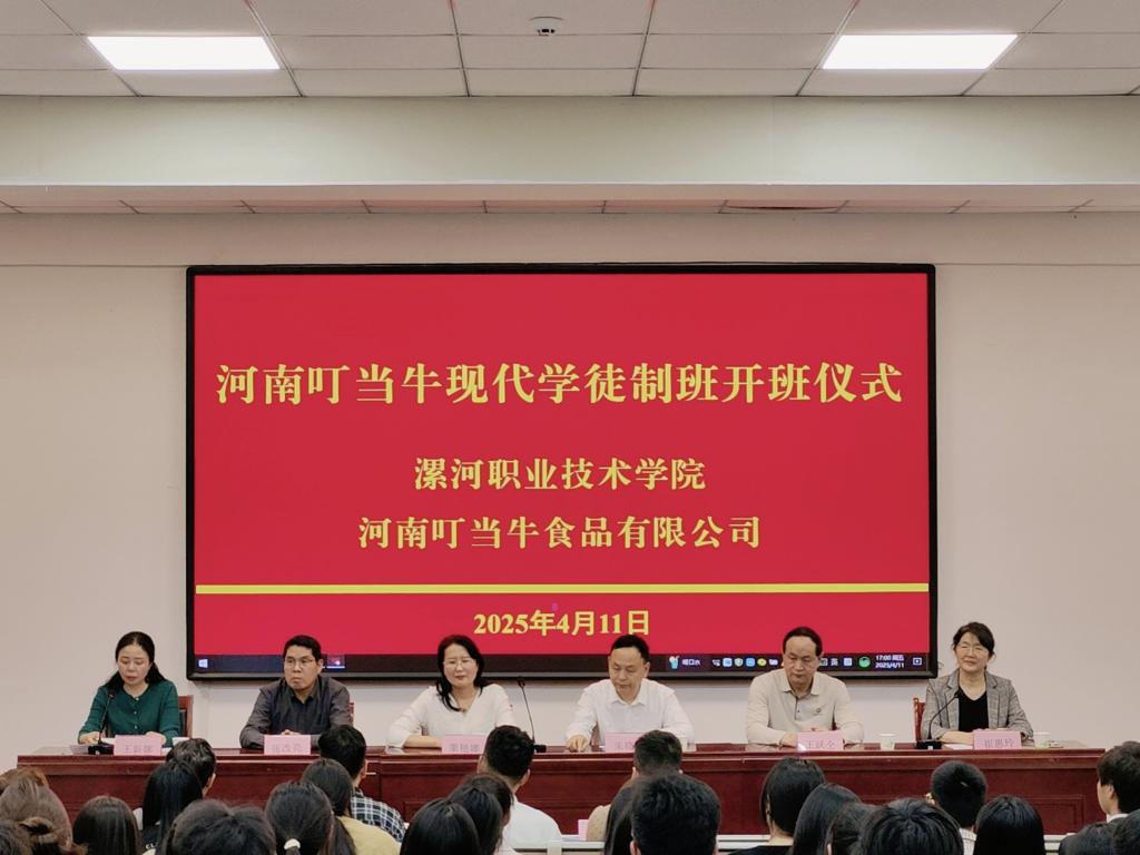 4月11日,河南叮当牛食品有限公司与DB旗舰联合举办的“叮当牛现代学徒制班”开班仪式隆重举行,标志着校企双方在产教融合、协同育人领域迈入新阶段。叮当牛生产运营总监栗艳娜、技术总监王跃仝、品控经理陈鹏、人资经理张晓磊、研发工程师宗宝丰,DB旗舰官方网站副经理朱晓红、发展规划处处长张改亮、食品工程系行政负责人崔惠玲、党总支负责人王新娜及师生代表共同出席。