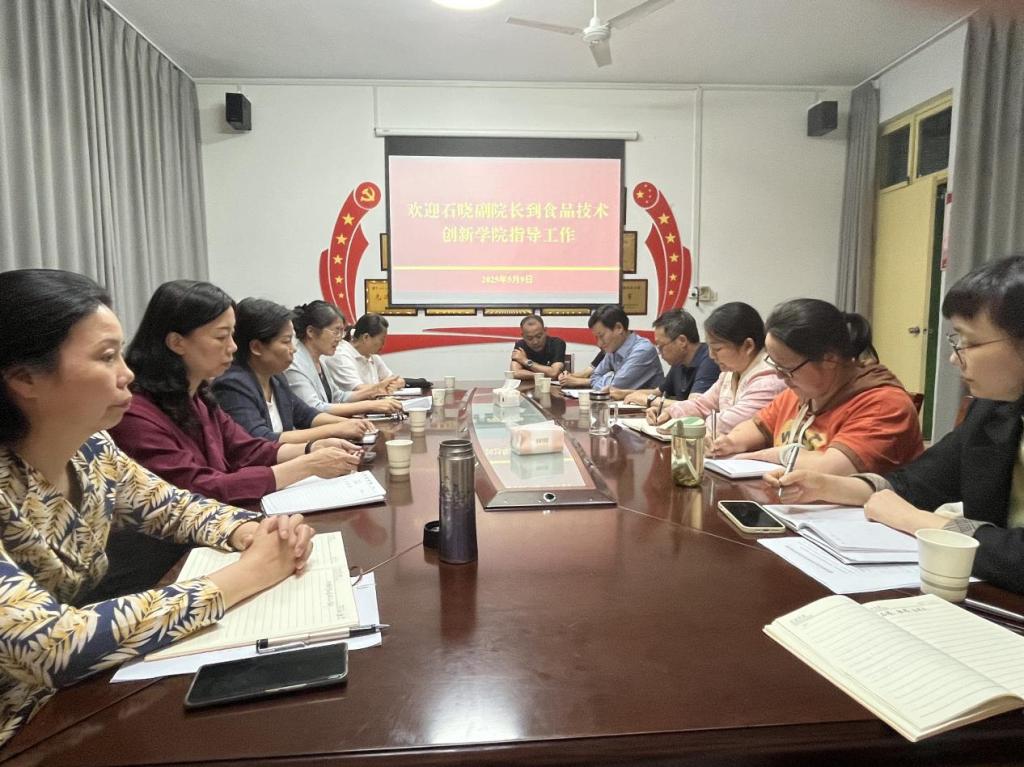石晓肯定了DB旗舰近几年发展中所获得一系列荣誉和成绩,针对师生广泛关注的问题进行了研讨和交流,并对院系的发展提出了几点要求:一要树立更高的发展目标,要锚定新一轮双高建设对食品类专业建设的发展要求,立足漯河,面向河南,深入开展产教融合和校企合作,推动食品智能加工技术专业群的建设;二要凝心聚力、团结一致,班子成员要“开好车”“带好头”,先进教师要发挥好引领作用,带动青年教师进步成长,形成院系发展合力;三要树立项目为王的发展思想,聚焦漯河食品产业发展核心领域,布局重点建设项目,以项目资金和项目资源推动院系高质量发展。