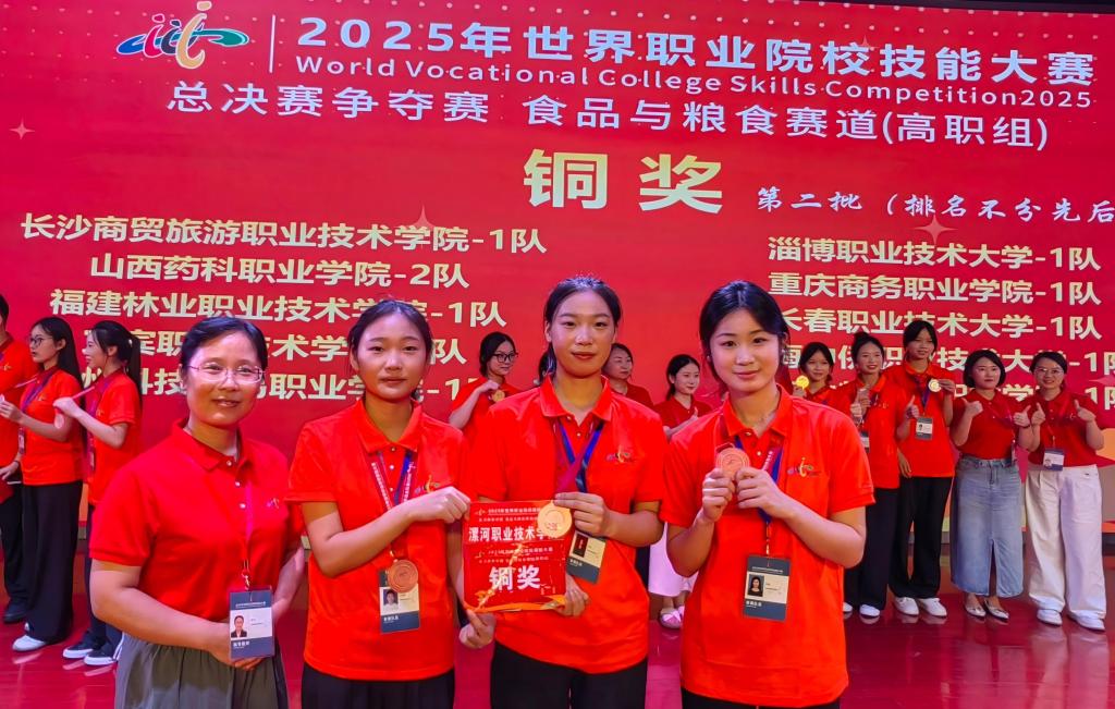 8月26日,经过连续3天的激烈角逐,2025年世界职业院校技能大赛食品与粮食赛道总决赛争夺赛在安徽芜湖落下帷幕。DB旗舰官方网站派出由张灿、申普、王智慧三名同学组成的代表队,荣获此次比赛铜奖。