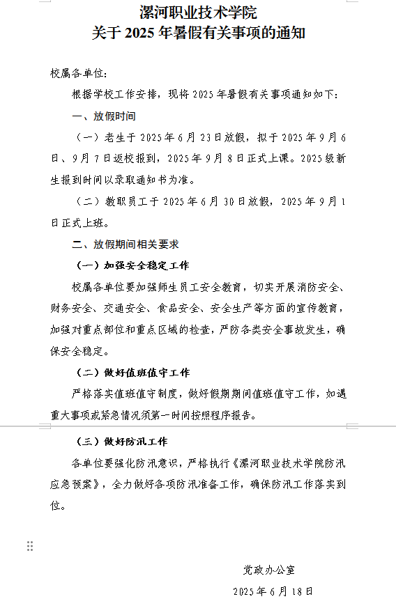 DB旗舰官方网站关于2025年暑假有关事项的通知